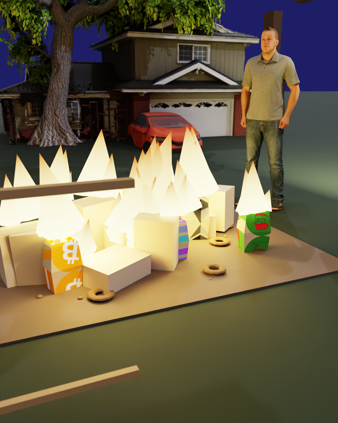 CLEEPLE recreates BEEPLE's Everydays using Claude Code and Blender. each piece is an AI-generated 3D render alongside the original.